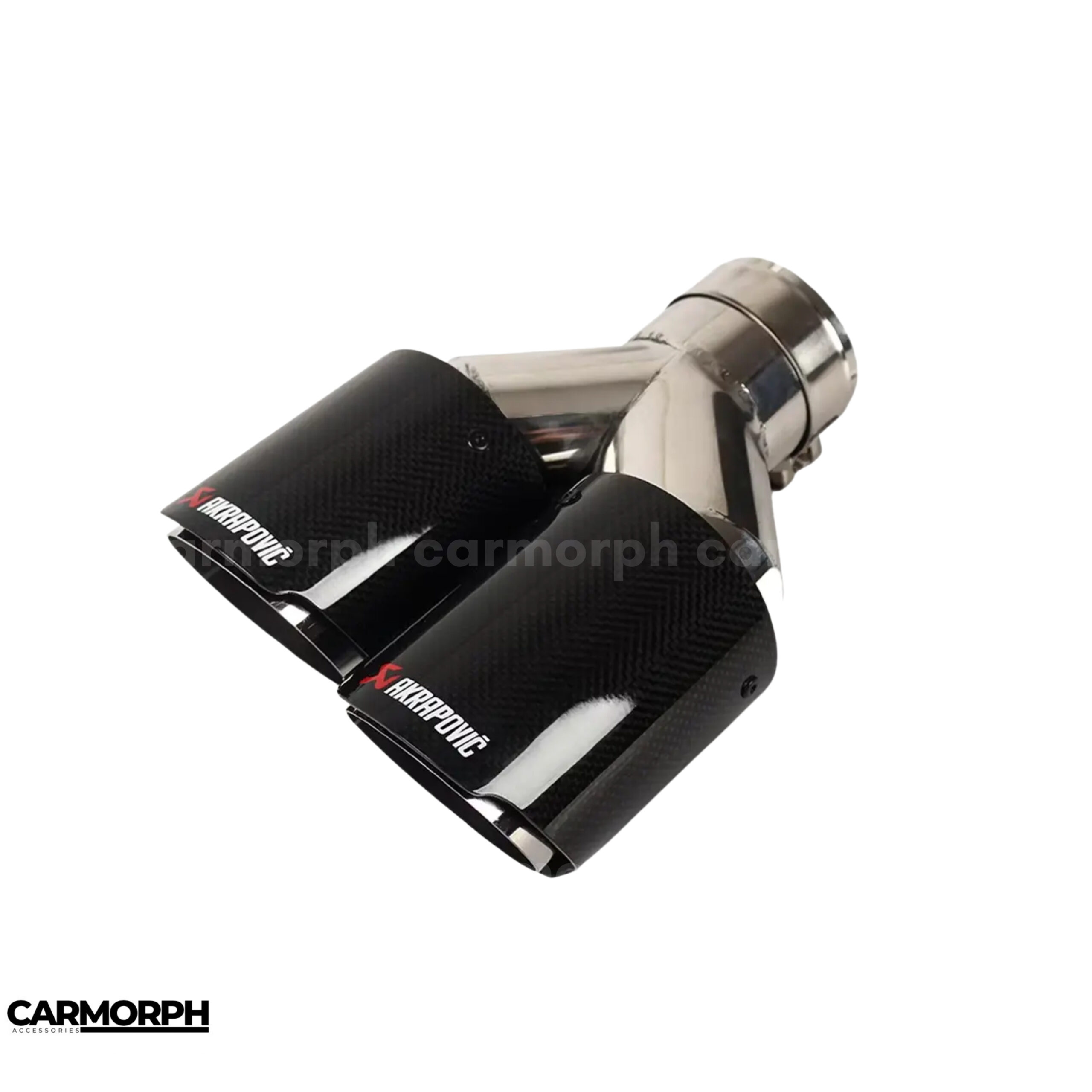 Akrapovic End Carbon Fibre Dual Tip is a universal double exhaust tip made from high-quality stainless steel with a distinctive red twill carbon fiber finish. Its dual oval pipe design fits most cars, offering easy, aftermarket installation that enhances both aesthetics and sportiness of the exhaust system. This premium tip provides a modern, aggressive look and may subtly improve exhaust sound.