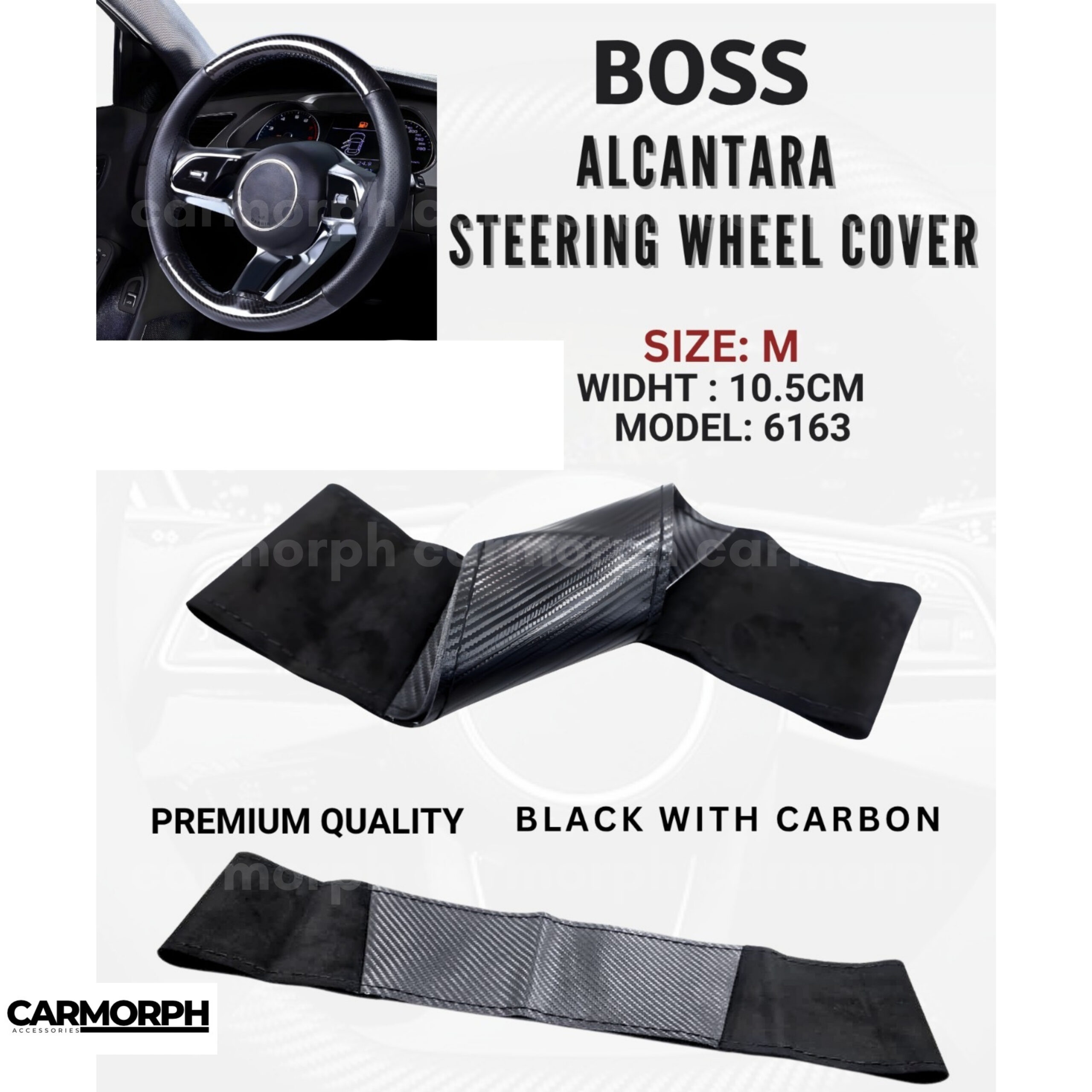 High-value keywords: Boss Alcantara steering wheel cover, medium size steering cover, Alcantara fabric wheel cover, diamond stitched grip cover, non-slip car steering cover, sporty steering wheel accessory, protective steering cover slip-on.