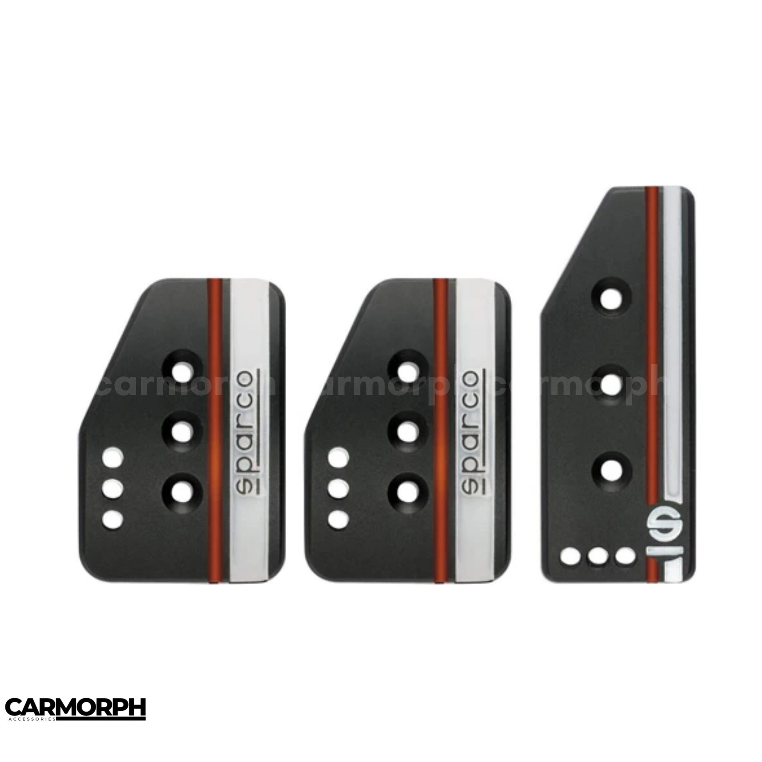 The Black Sparco Pedal Kit Set (Universal) is made from high-quality aluminum alloy with a non-slip rubber surface for enhanced grip and control. This sporty pedal set includes accelerator, brake, and clutch pedals designed for most manual transmission cars, offering easy installation and superior durability. The black finish delivers a sleek, modern look while improving safety and driving comfort.​