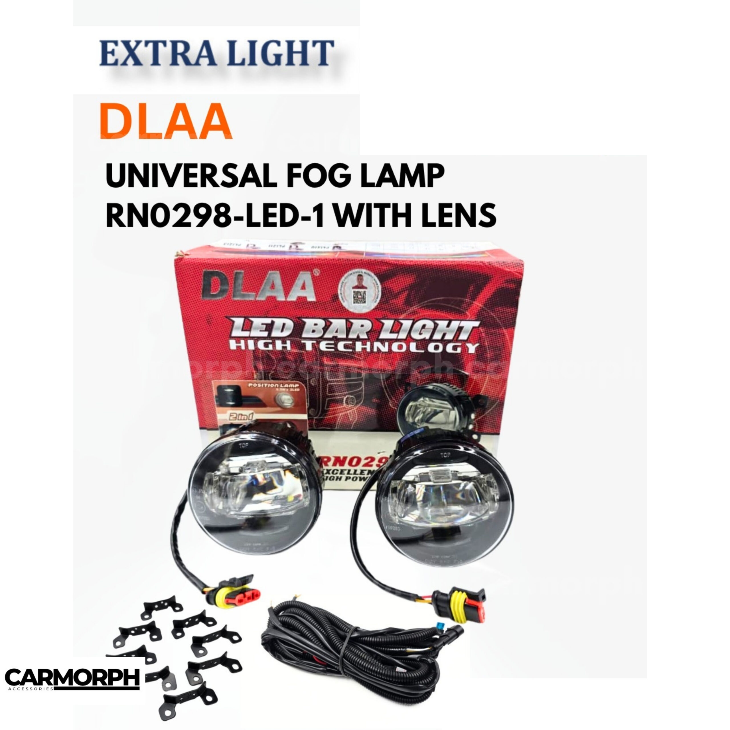 DLAA Universal Fog Lamp RNO298-LED-1 With Lens is a high-intensity LED fog lamp, universal fit, with a waterproof clear lens for focused, bright illumination in harsh weather. Durable, easy to install, and improves road visibility.