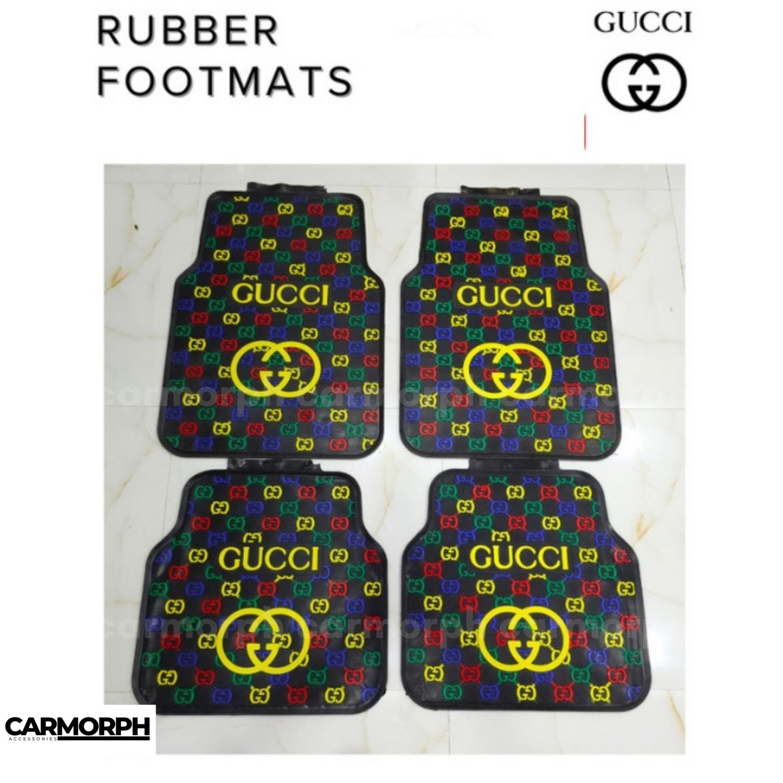 “Gucci Universal Floor Matt (foot/rubber mats) are available as universal or custom-fit options for all models. Made from durable rubber or thermoplastic (TPE, PVC), they are waterproof, anti-slip, odorless, and washable. All-weather mats feature raised edges and deep grooves for trapping mud, snow, dirt, and spills, protecting the vehicle’s interior. Secure fitments with anchor points help prevent sliding. Sets are commonly 4 or 5 pieces for front/rear coverage and are ideal for heavy-duty, daily use in all climates, including rain and snow.​