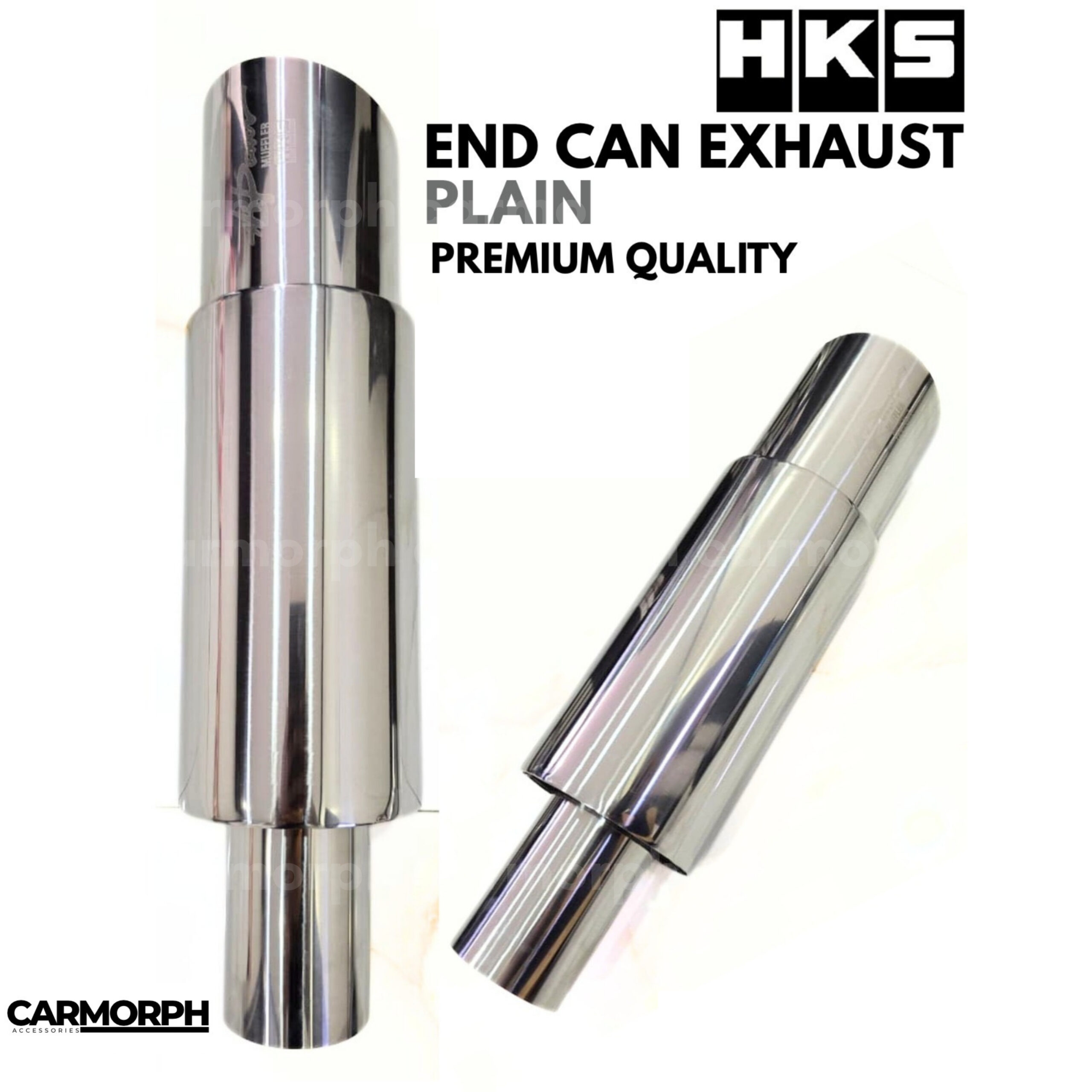 HKS End Can Exhaust Plain is a stainless steel performance muffler with a clean, polished finish. It features a single or dual-tip design, providing improved exhaust flow and a subtle sporty sound. The muffler is designed for easy bolt-on installation, universal fit for most vehicles, and offers durable, heat-resistant construction without decorative burnt or colourful tips.