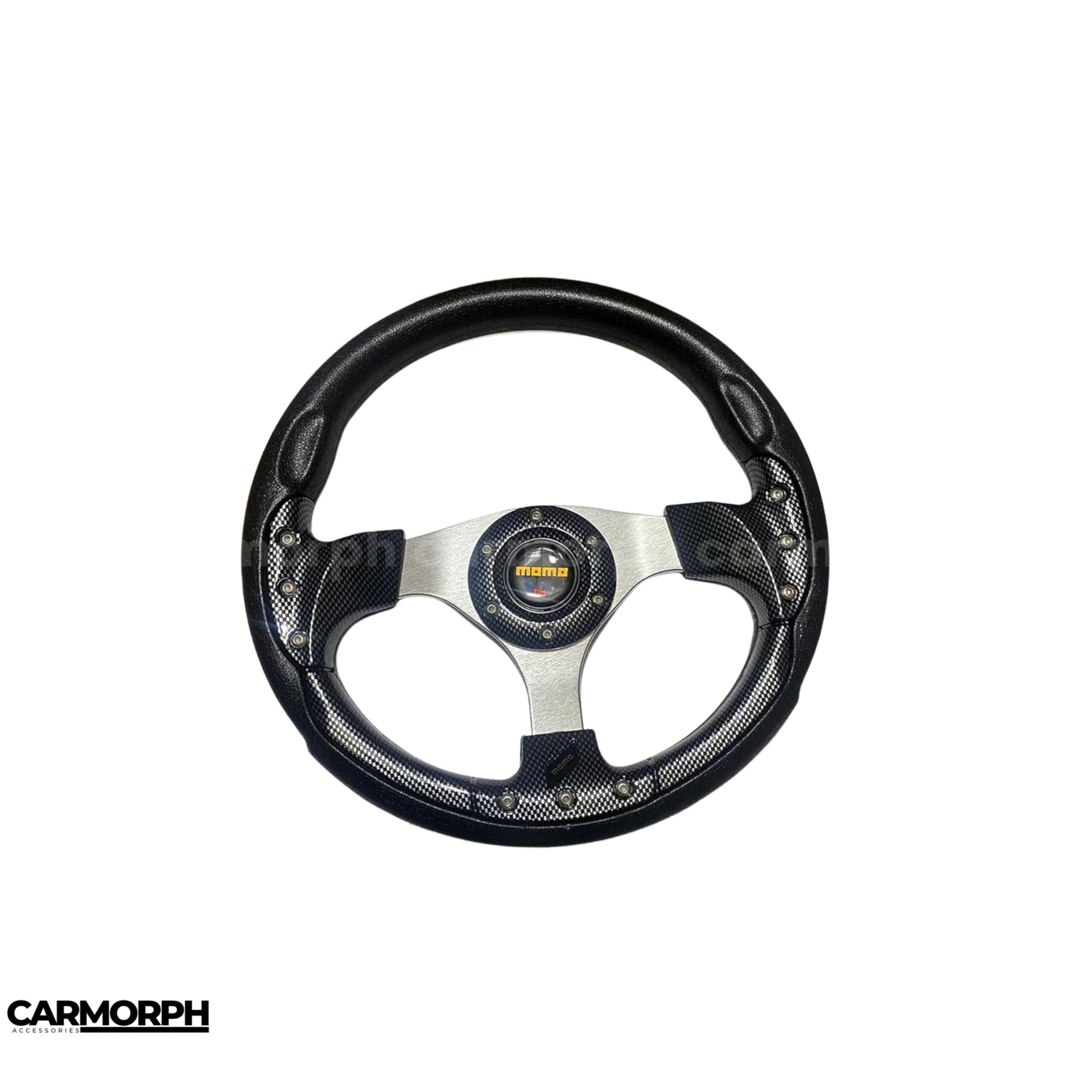 The Momo Gray Flat Steering Wheel (D-shape, Universal, 12-inch) features a flat-bottom profile for extra legroom and sporty handling, gray PU leather grip for comfort, robust alloy construction, and a universal 6-bolt fitment for easy installation. Compatible with most cars, rally, and tuning builds, it boosts cockpit access and interior style while delivering reliable performance. This premium wheel is ideal for enthusiasts wanting ergonomic motorsport aesthetics and a fast upgrade.