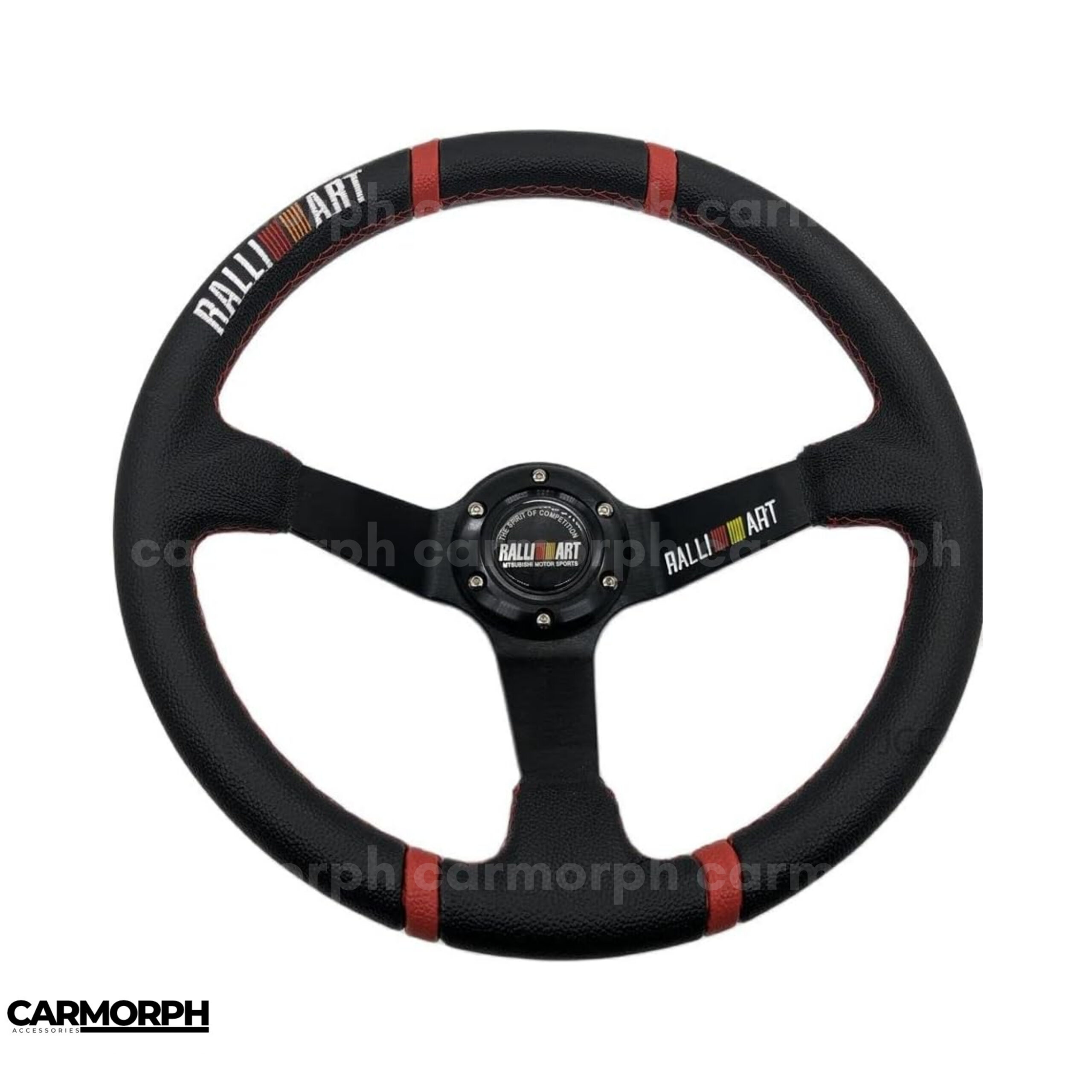 High-value keywords: Rallyart steering wheel, universal racing steering, 350mm Ralliart drift steering, ABS deep dish steering wheel, racing steering with horn button, carbon fiber motorsport steering.