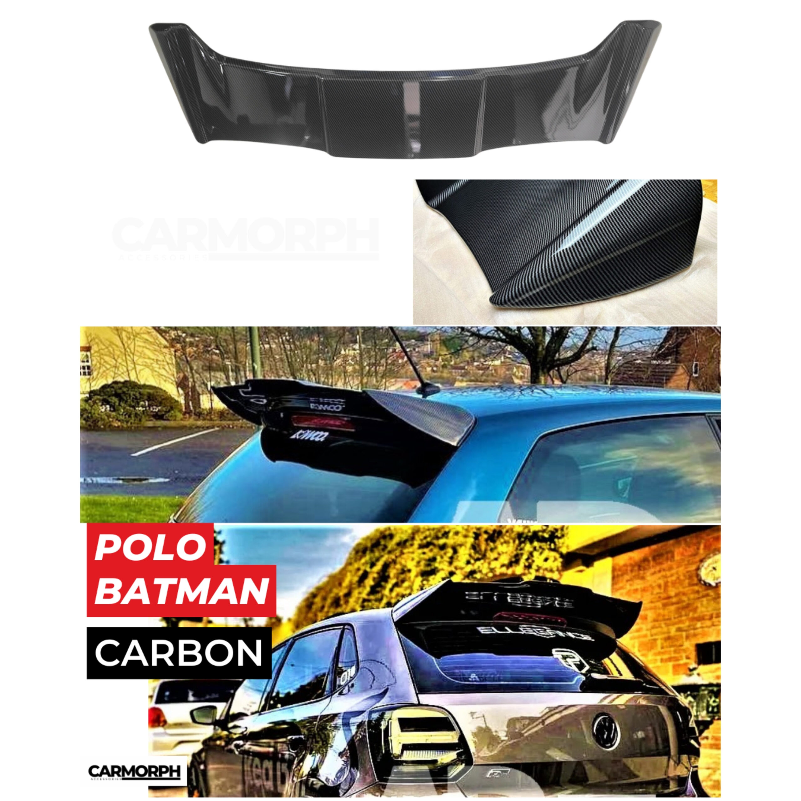 High-value keywords: Polo Batman carbon fibre spoiler, VW Polo carbon fiber rear spoiler, Batman style carbon spoiler, lightweight ABS carbon fiber wing, sporty Polo spoiler, aerodynamic Polo roof spoiler, OEM fit Polo spoiler.​