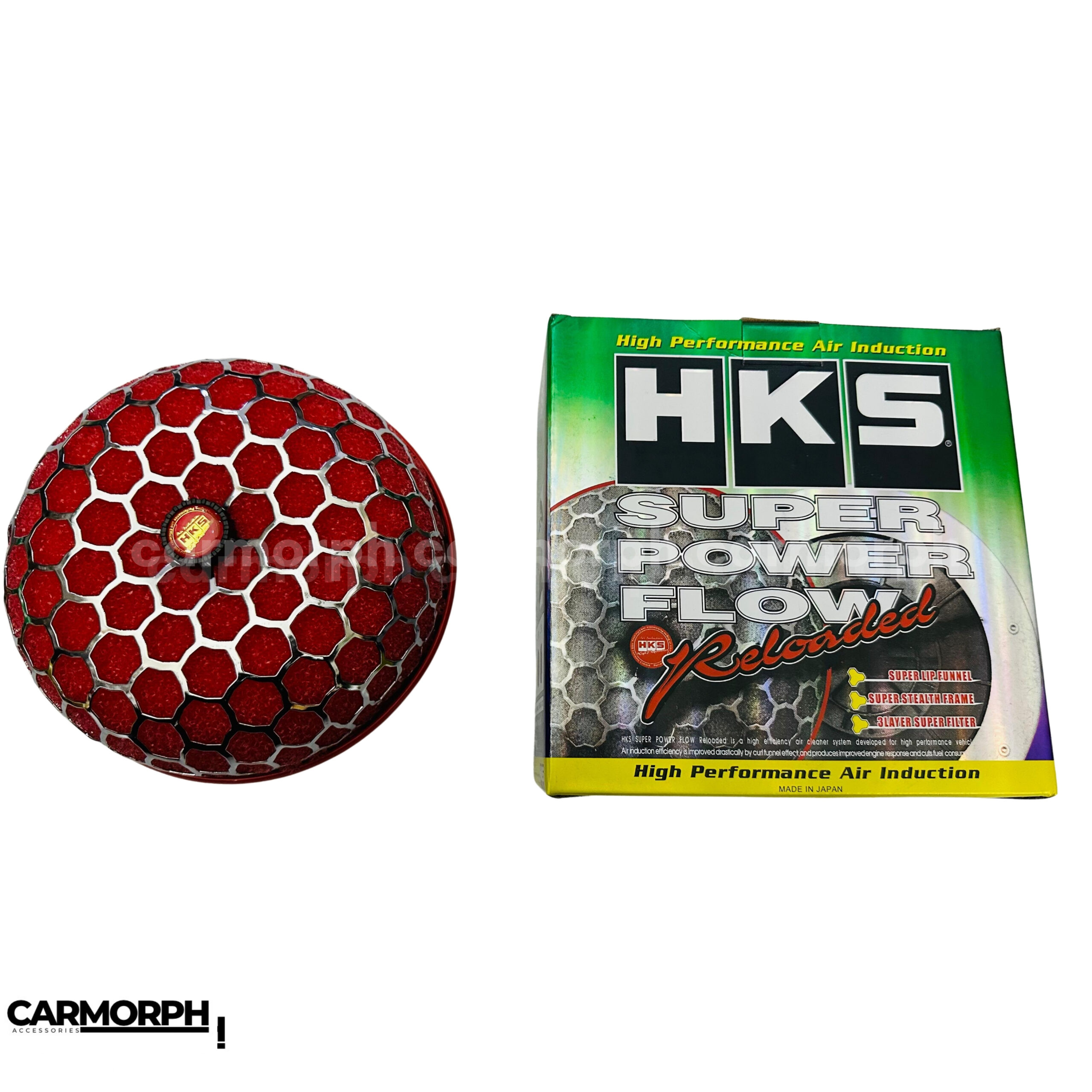 High-value keywords: HKS mushroom air filter, universal intake filter, high-flow racing air filter, 3-layer dry polyurethane filter, performance induction filter, large bore air intake, washable engine filter.