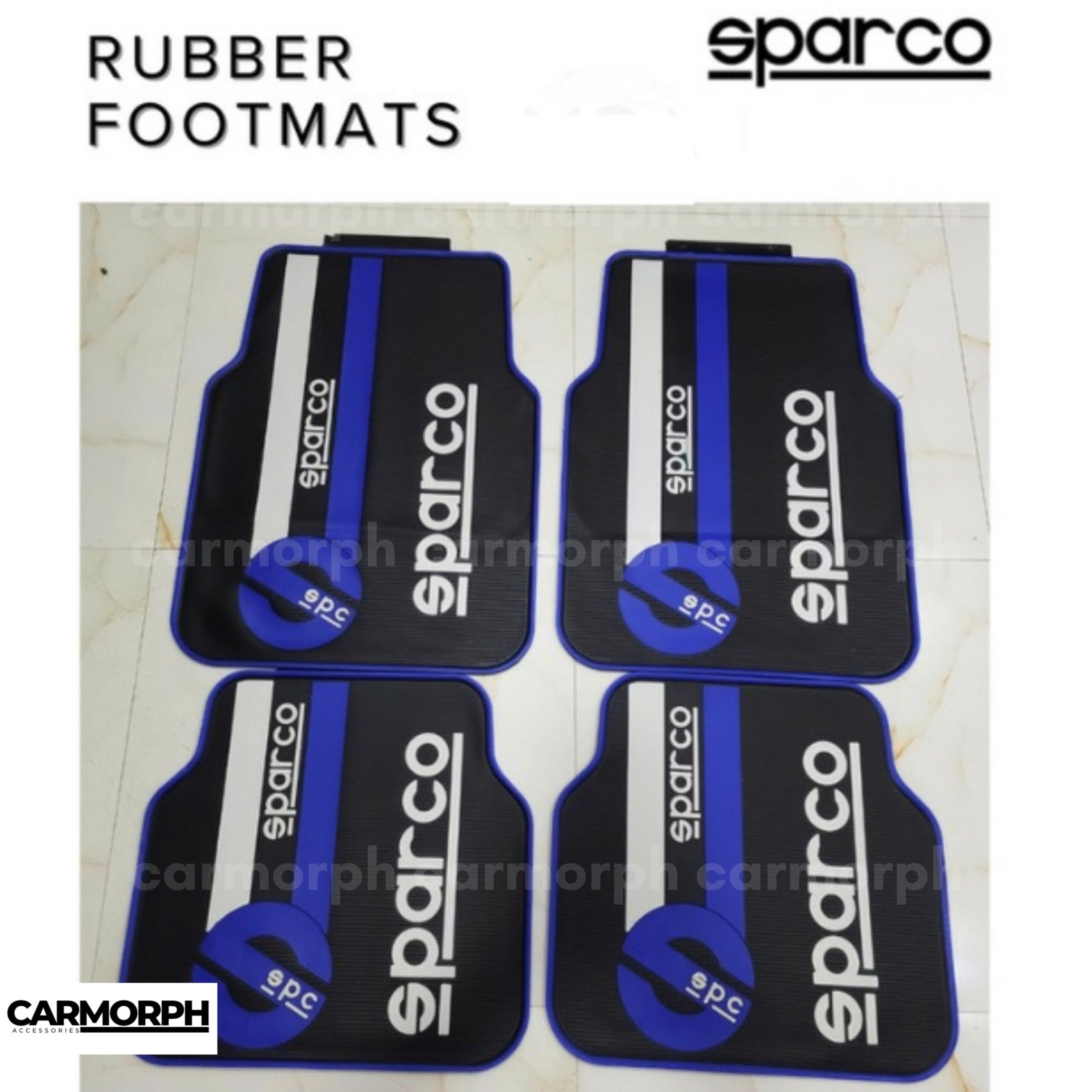 Sparco Car Floor Mats (foot/rubber mats) are universal, high-grade rubber mats designed for all-weather protection and a sporty JDM/racing look. Each set typically includes 4 mats (2 front, 2 rear), with anti-slip backing, easy-to-clean washable surface, and universal fit suitable for most cars, SUVs, and trucks. Durable and water-resistant, they protect cabins from dirt, mud, water, and wear, and are available in colors like black, blue, or red. Check the mat dimensions for your vehicle before purchase.​