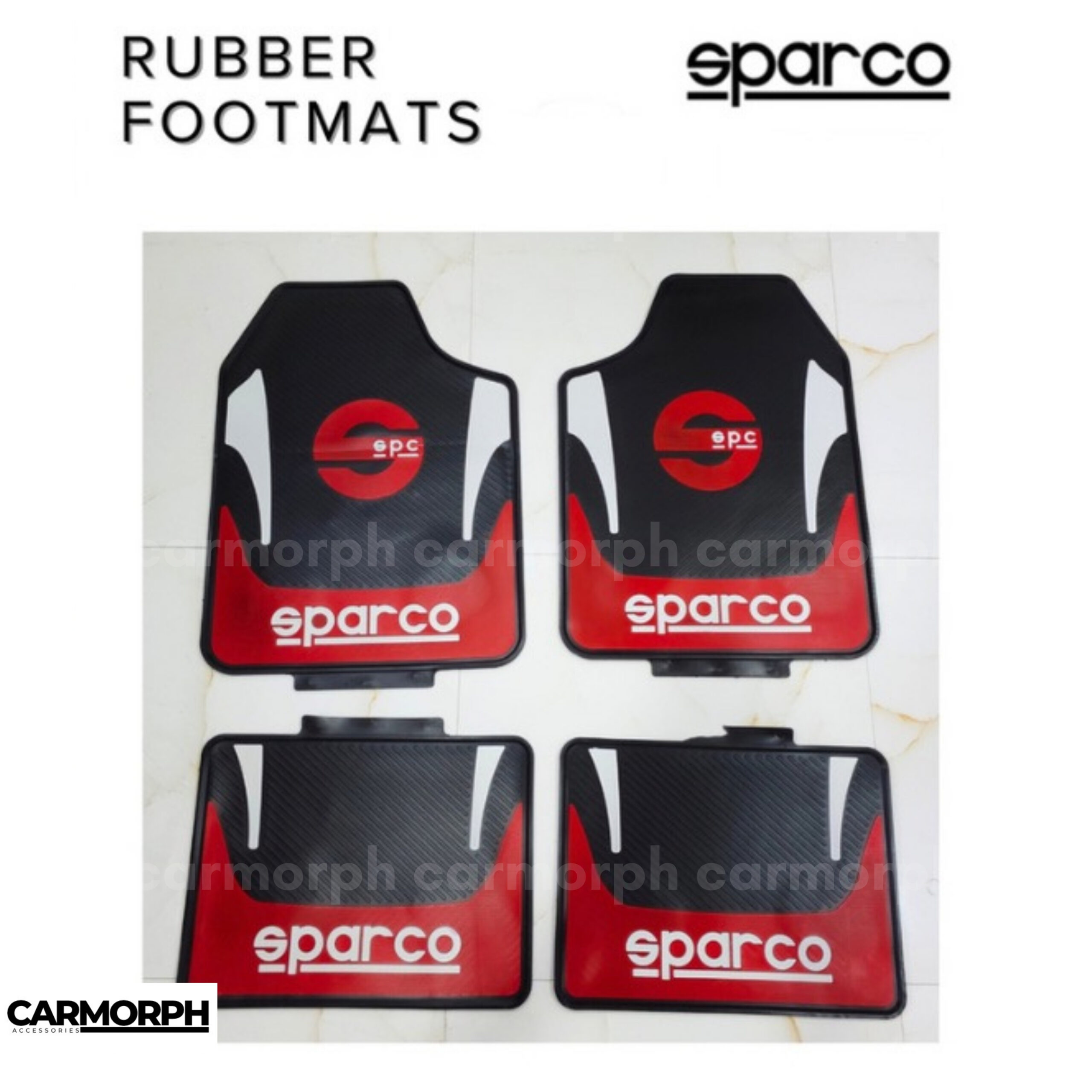 Sparco Car Floor Mats (foot/rubber mats) are universal, high-grade rubber mats designed for all-weather protection and a sporty JDM/racing look. Each set typically includes 4 mats (2 front, 2 rear), with anti-slip backing, easy-to-clean washable surface, and universal fit suitable for most cars, SUVs, and trucks. Durable and water-resistant, they protect cabins from dirt, mud, water, and wear, and are available in colors like black, blue, or red. Check the mat dimensions for your vehicle before purchase.​