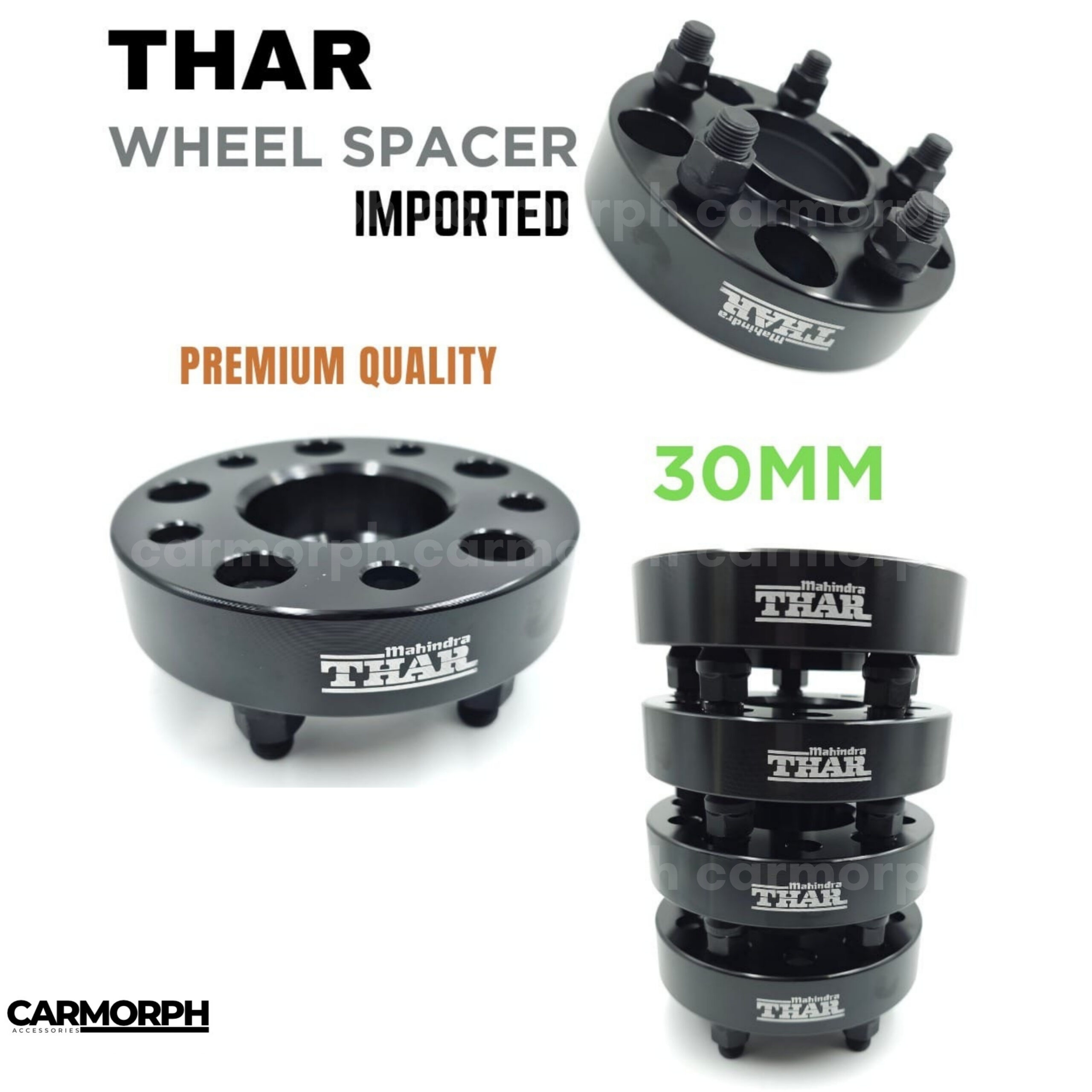 Thar 30MM Wheel Spacer is a high-quality accessory designed to widen the track of your Mahindra Thar for a more aggressive stance and improved stability. Made from heat-treated billet aluminum with anodized finish for corrosion resistance, it includes hardened bolts for secure fitment. The spacer increases tire clearance and allows installation of wider or larger tires. It is lightweight, durable, and easy to install with a bolt-on design. Common specs include 5×114.3 PCD, 67.1 mm center bore, and compatibility with stock and aftermarket wheels.